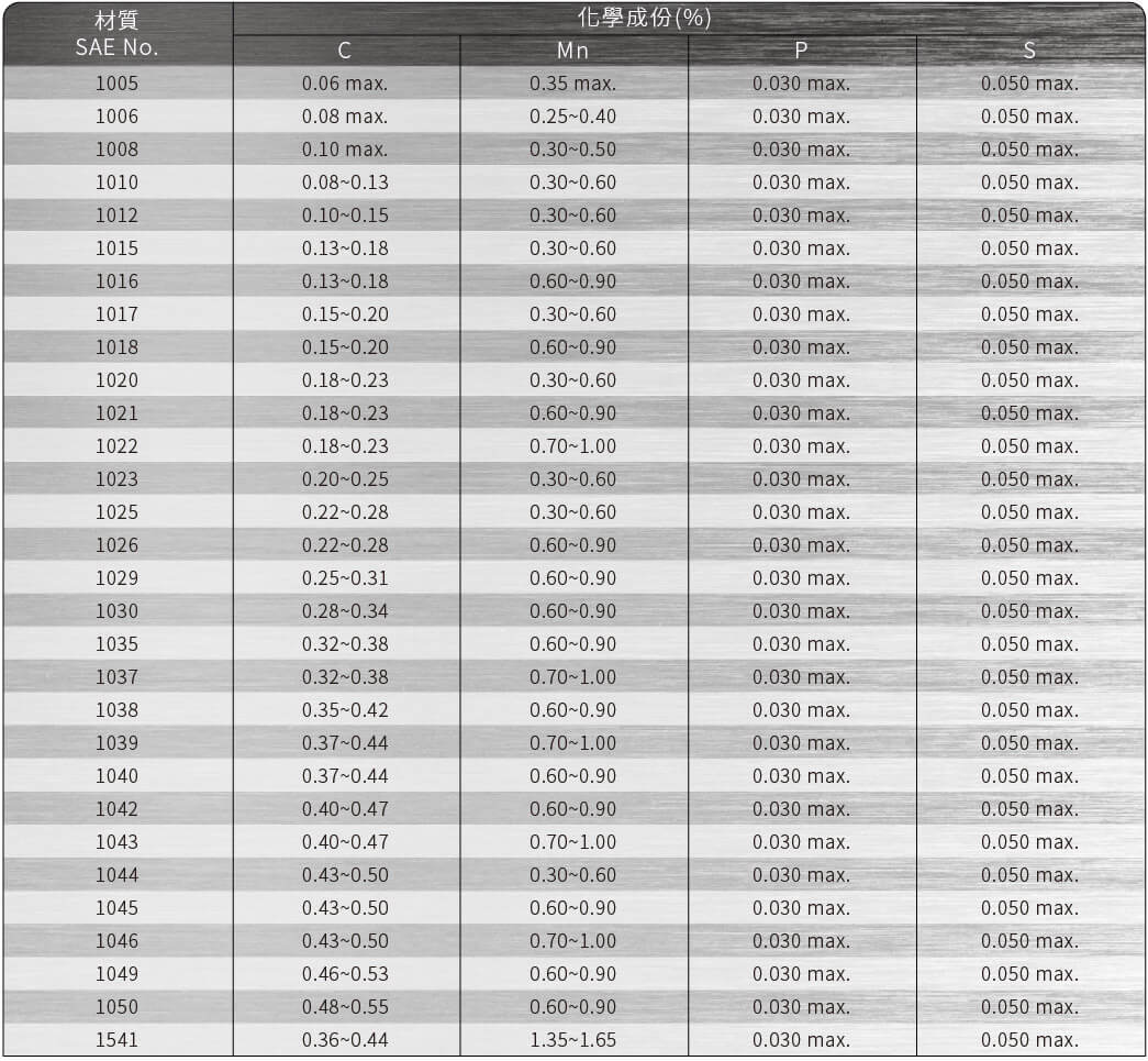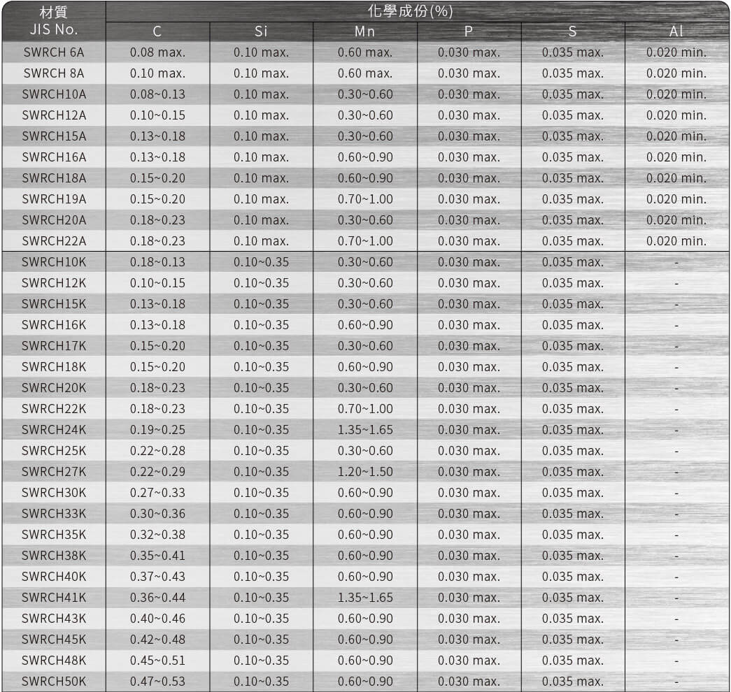 備註:以上資料參考中鋼型錄,實際供貨規格依實際狀況而定。